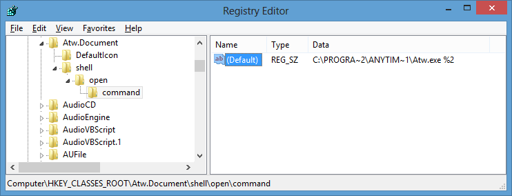 - (Default) = C:\PROGRA~2\ANYTIM~1\Atw.exe “%1” (correct)